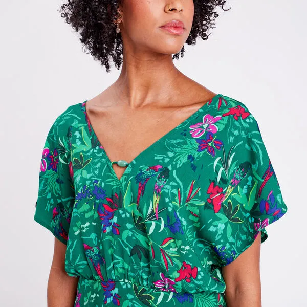 - Empiècement volanté sur le bas de la robe