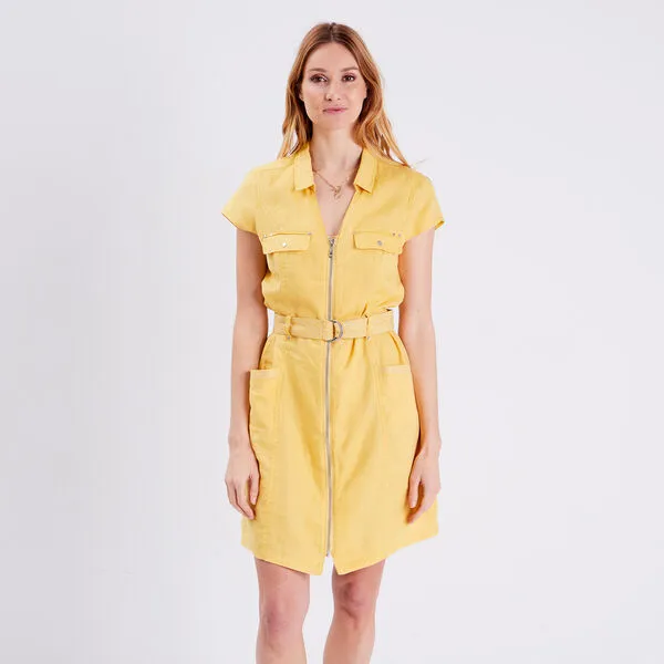 - Robe droite ceinturée zippée