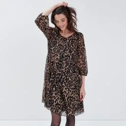 - Robe droite manches 3/4