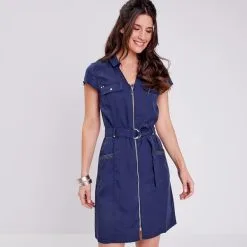 - Robe droite zippée en jean
