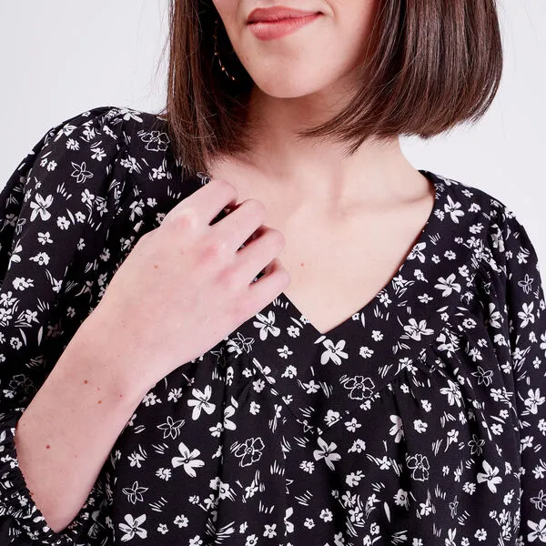 La mannequin mesure 177cm et porte une taille 36.