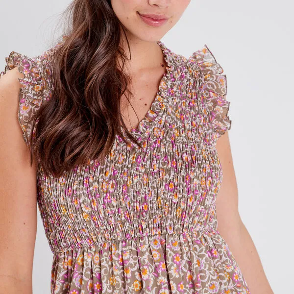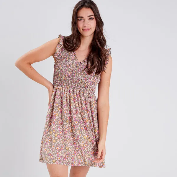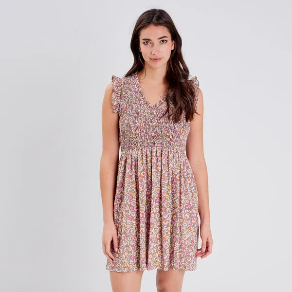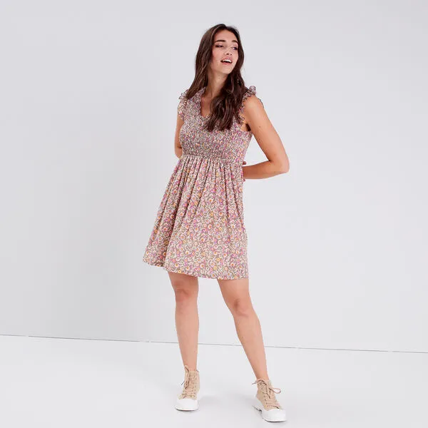 - Robe évasée smockée